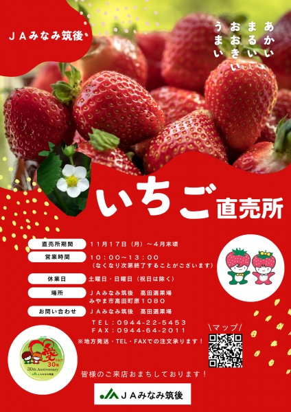 今年もいちごの季節がやってきました! JAみなみ筑後高田選果場ではいちごの直売所をオープン致します#…