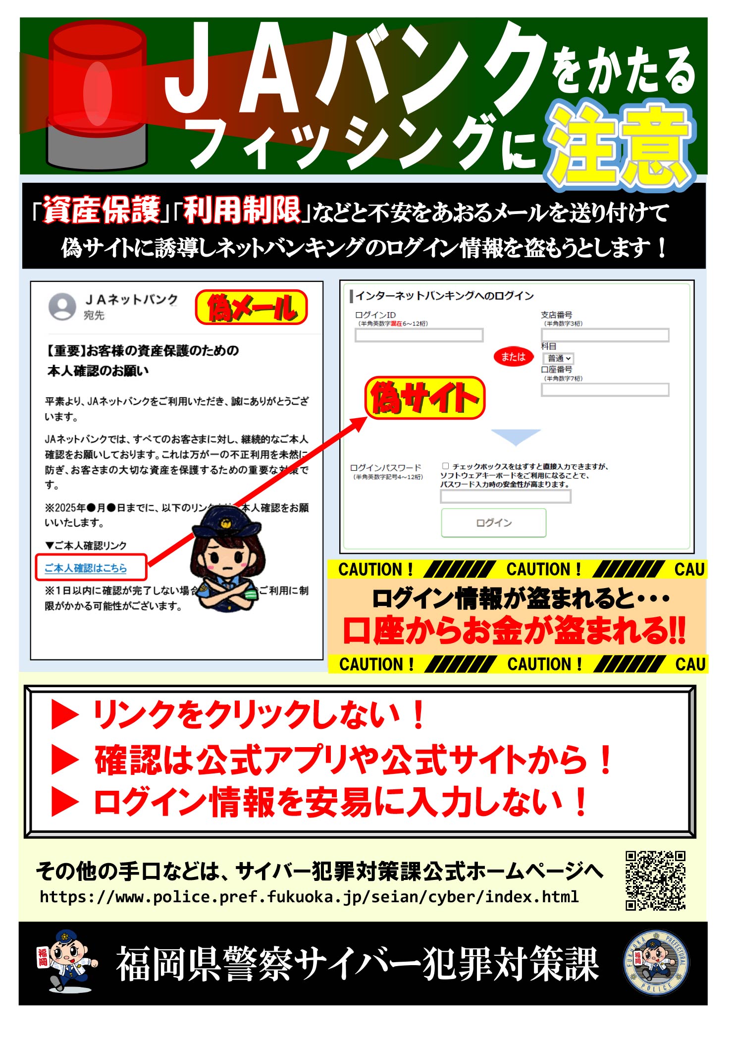 ⇒ JAバンク福岡「【重要】JAを装った不審な電子メールにご注意ください」